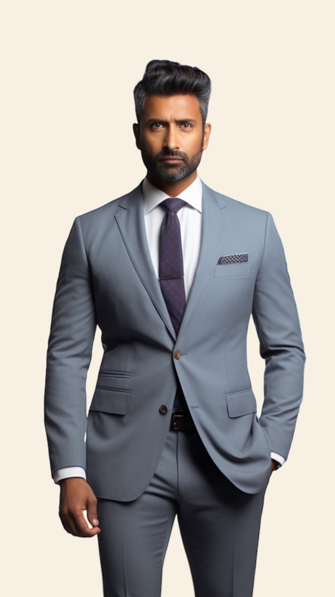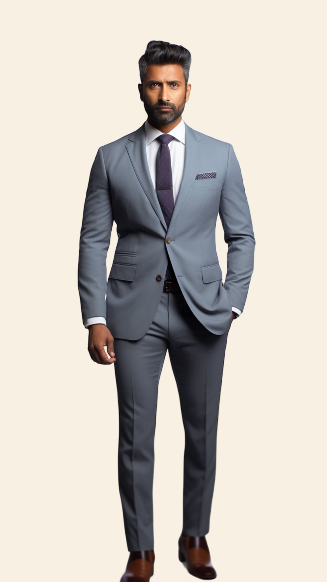 Custom Men's Grey Suit in Stone Shade - Crafted in Terry Rayon by BWO