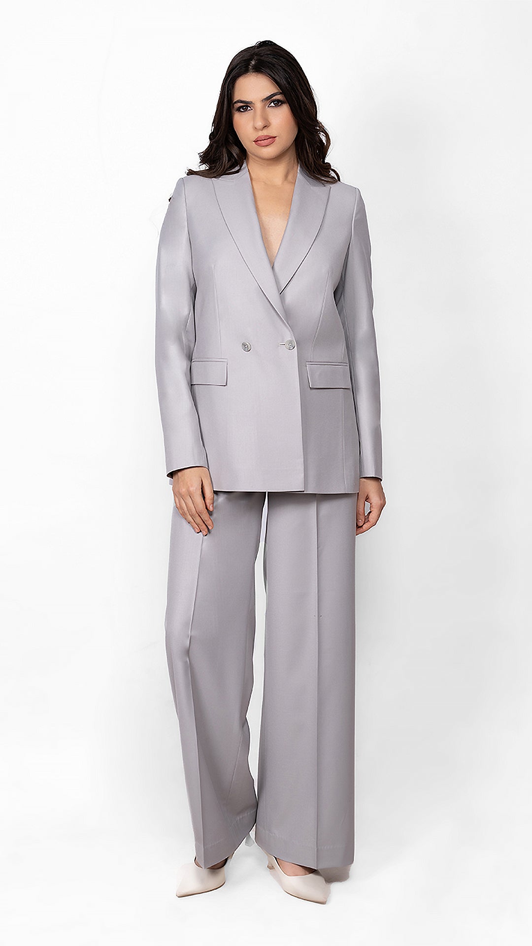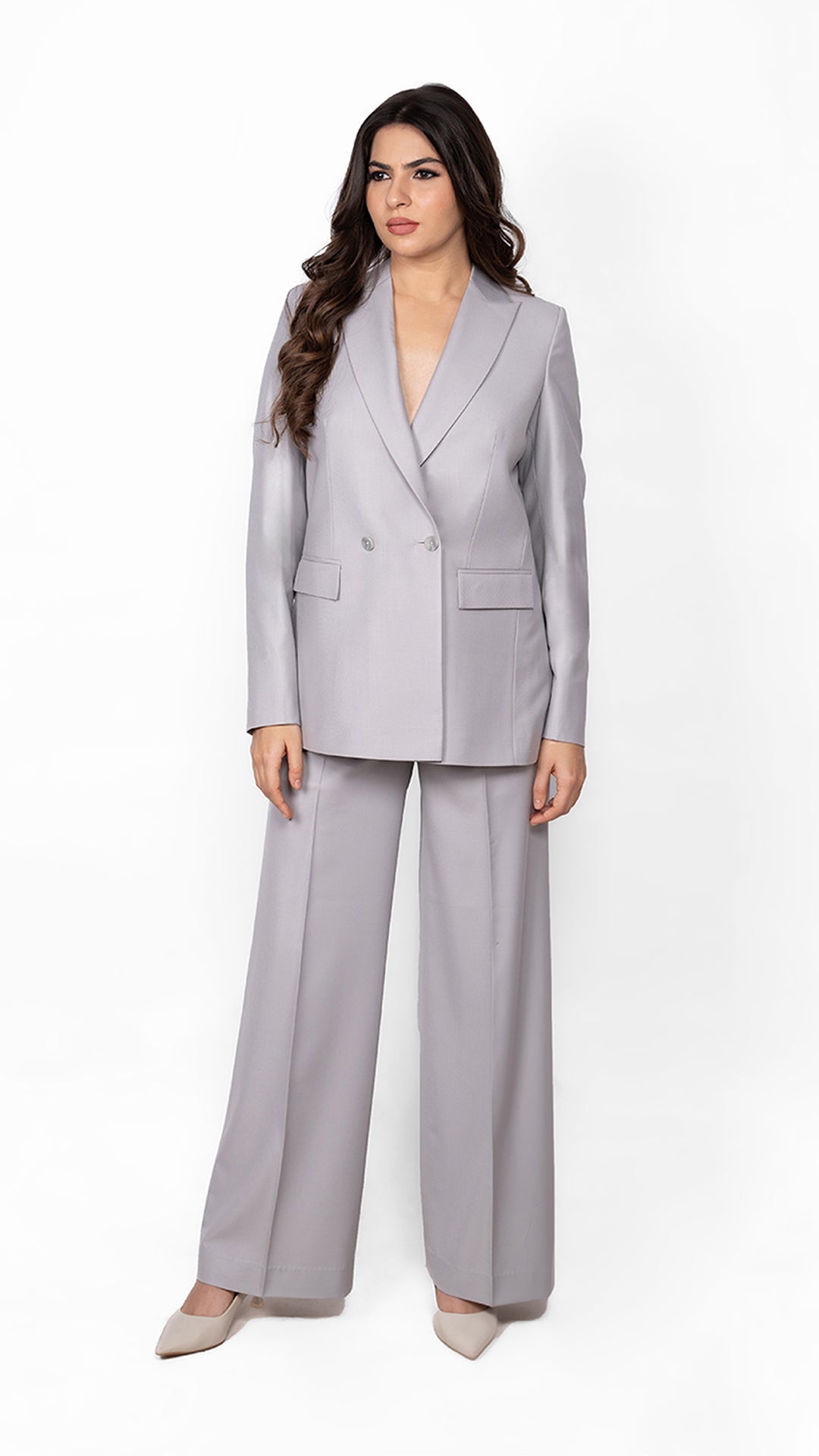 Custom Women's Double Breasted Pant Suit - Light Grey | BWO
