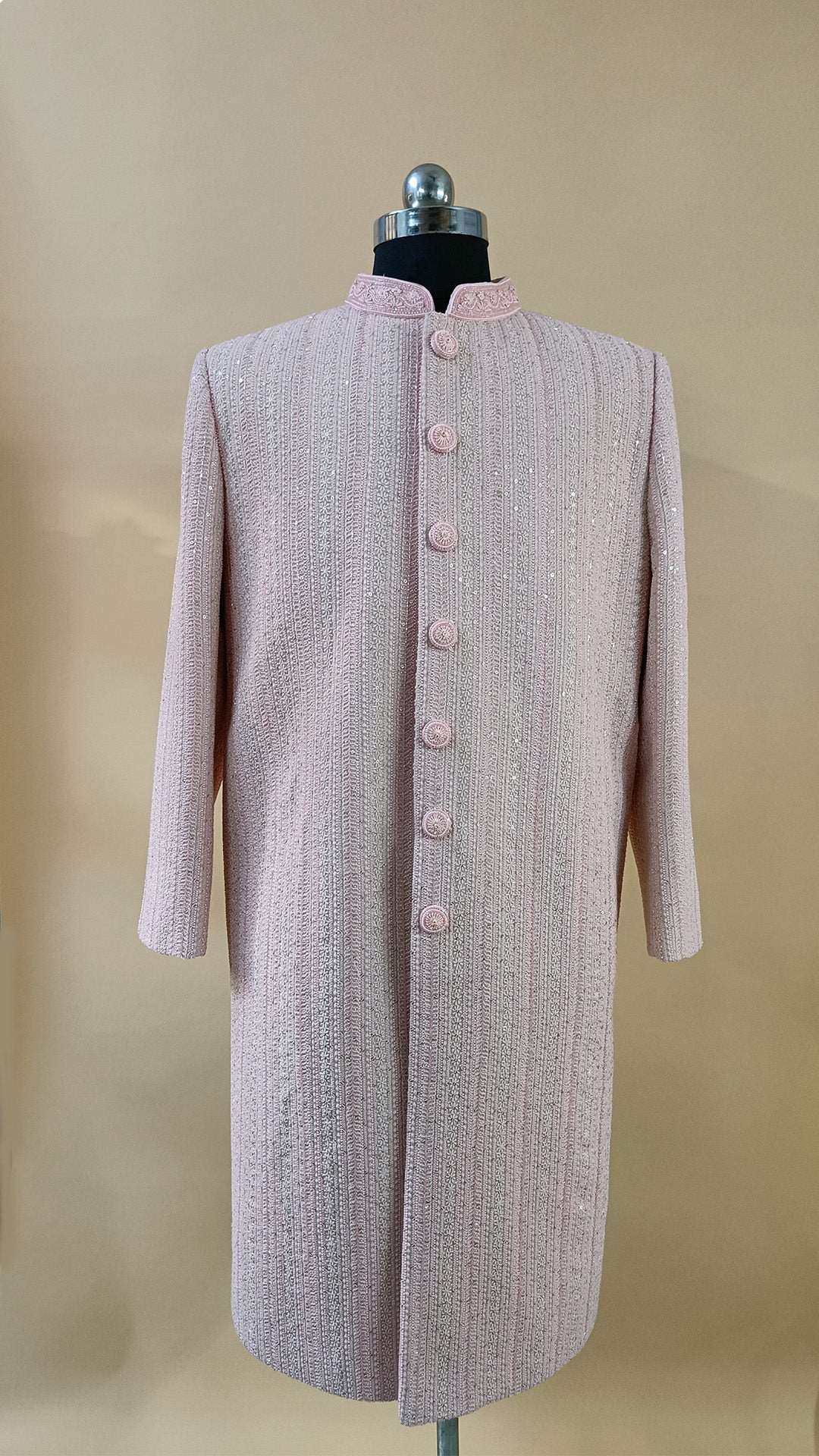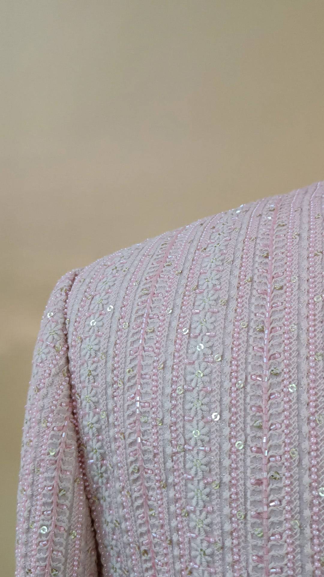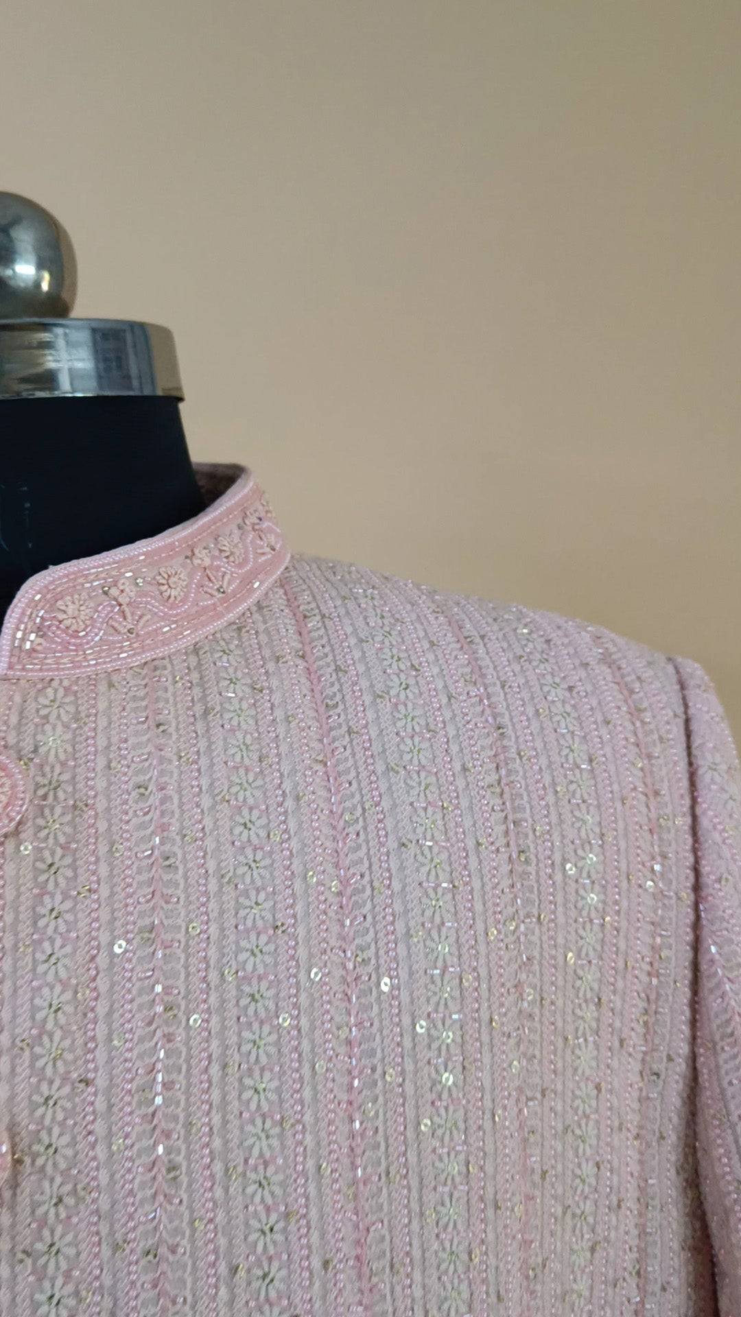 Pink Hand-Embroidered Lucknowi Columnar Floral Sherwani Set - BWO by Smit Pithadia