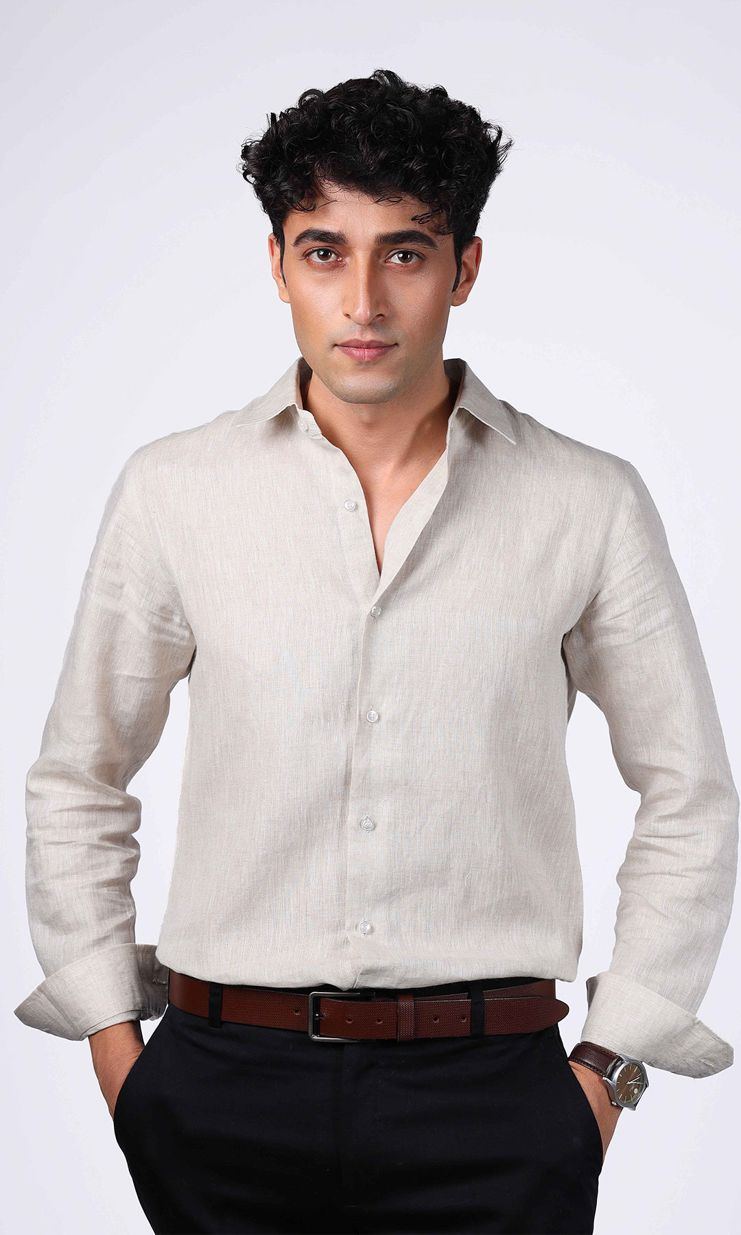 Beige Pure Linen Shirt for Men | BWO by Smit Pithadia