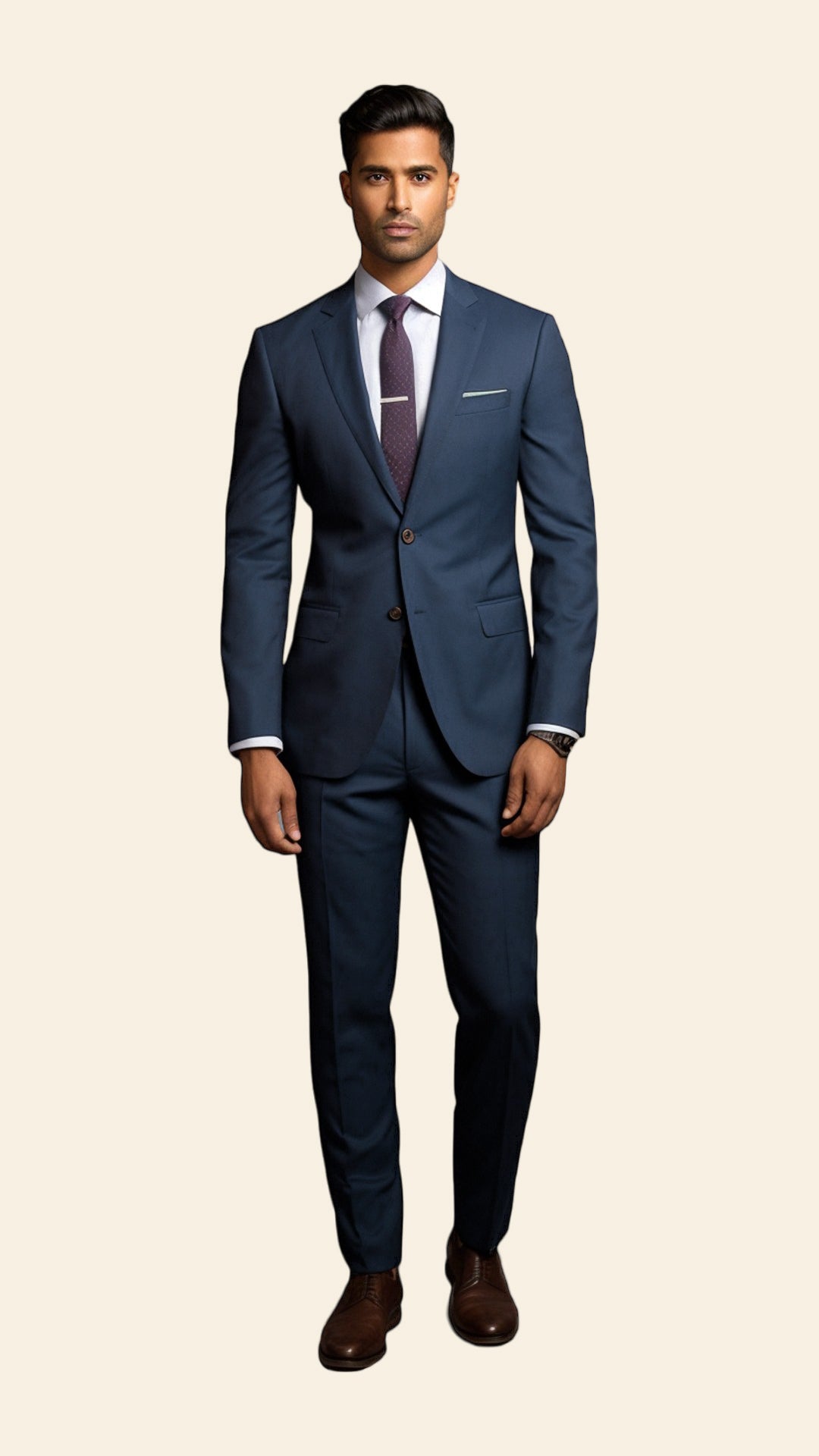 Custom Men's Three-Piece Blue Suit in Navy Shade - Crafted in Terry Rayon by BWO