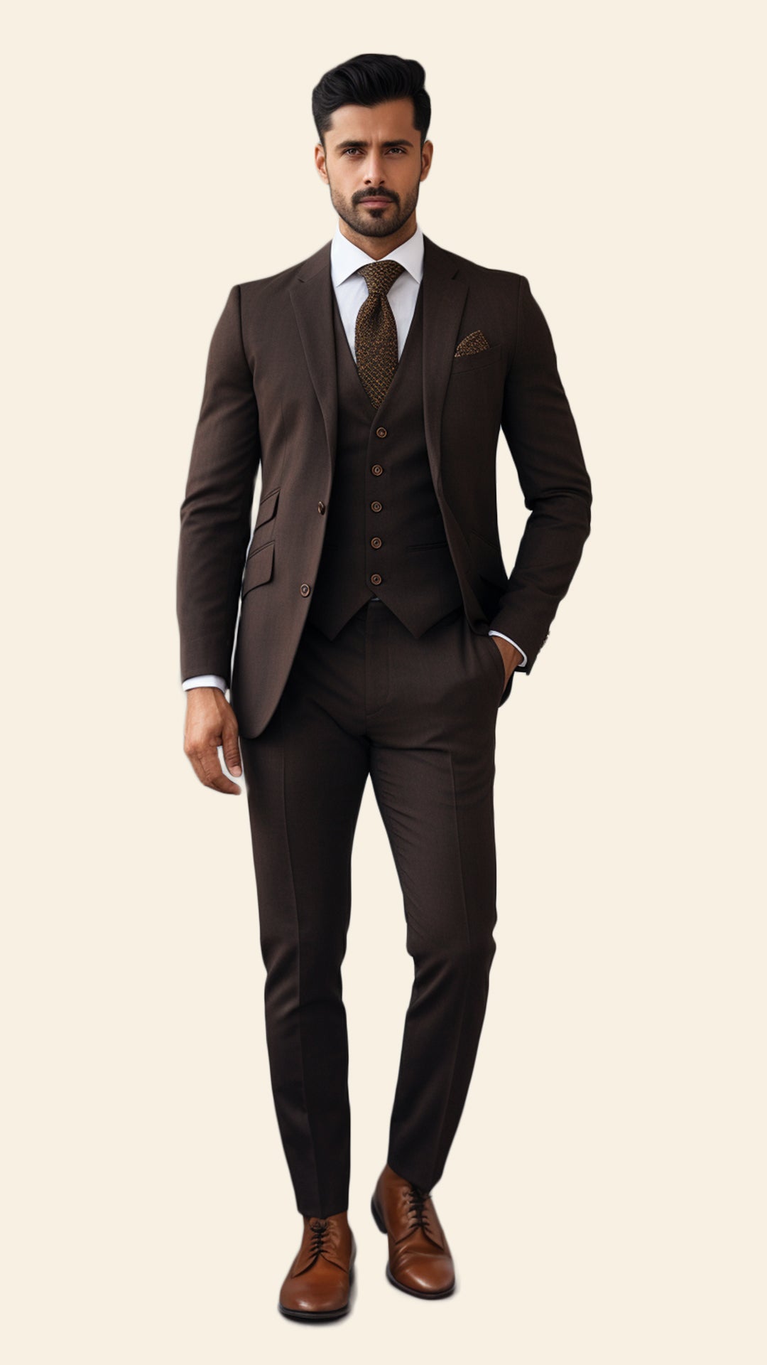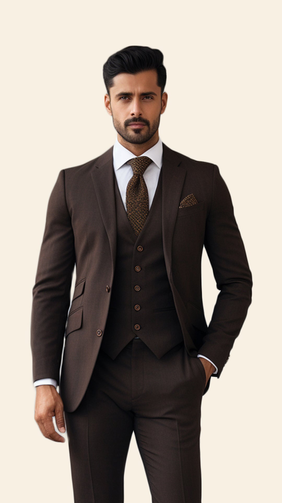 Bespoke Men's Three-Piece Brown Suit in Chocolate Shade - Crafted in Terry Rayon by BWO
