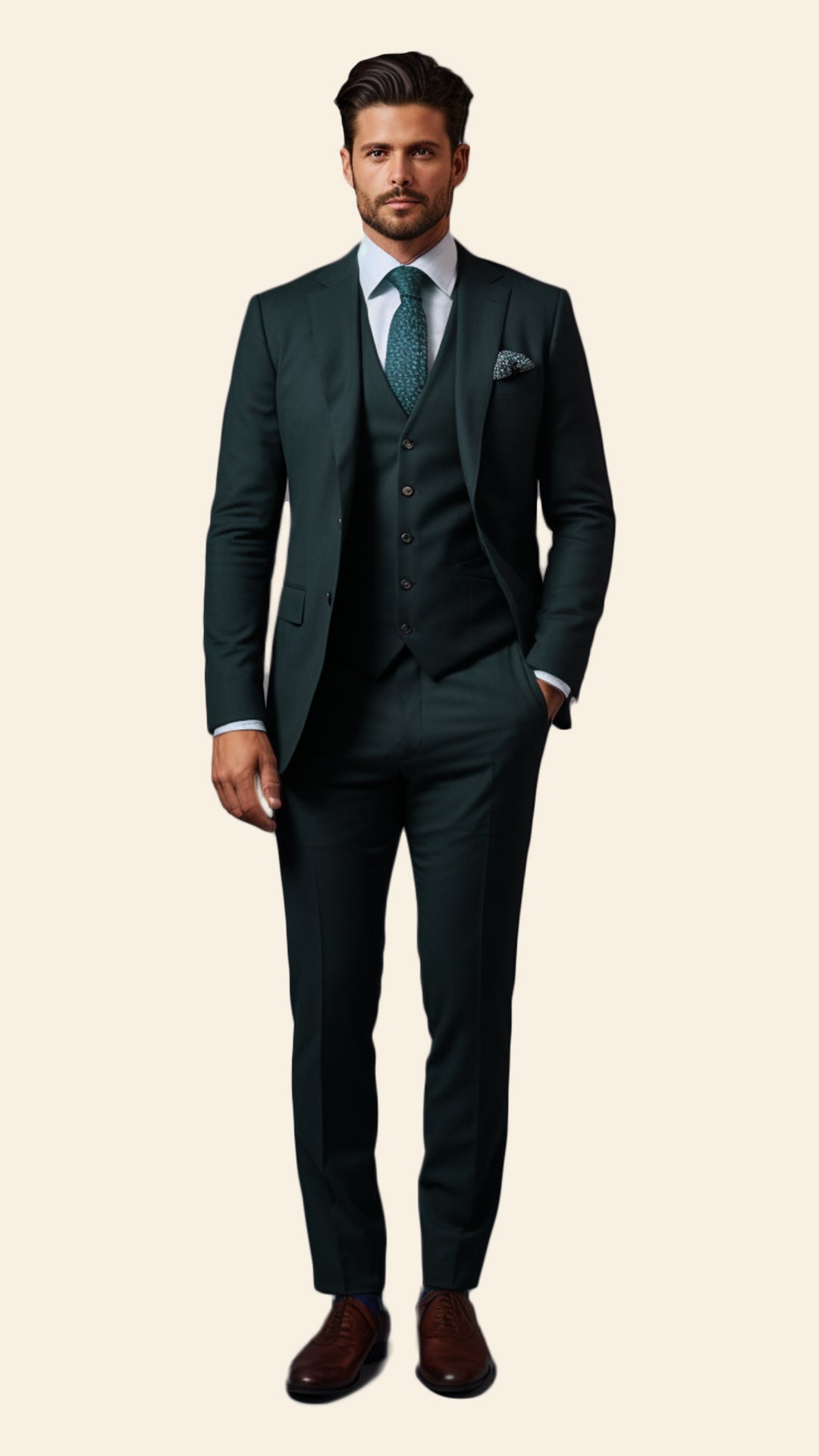 Bespoke Men's Three-Piece Green Suit in Dark Hunter Shade - Crafted in Terry Rayon by BWO