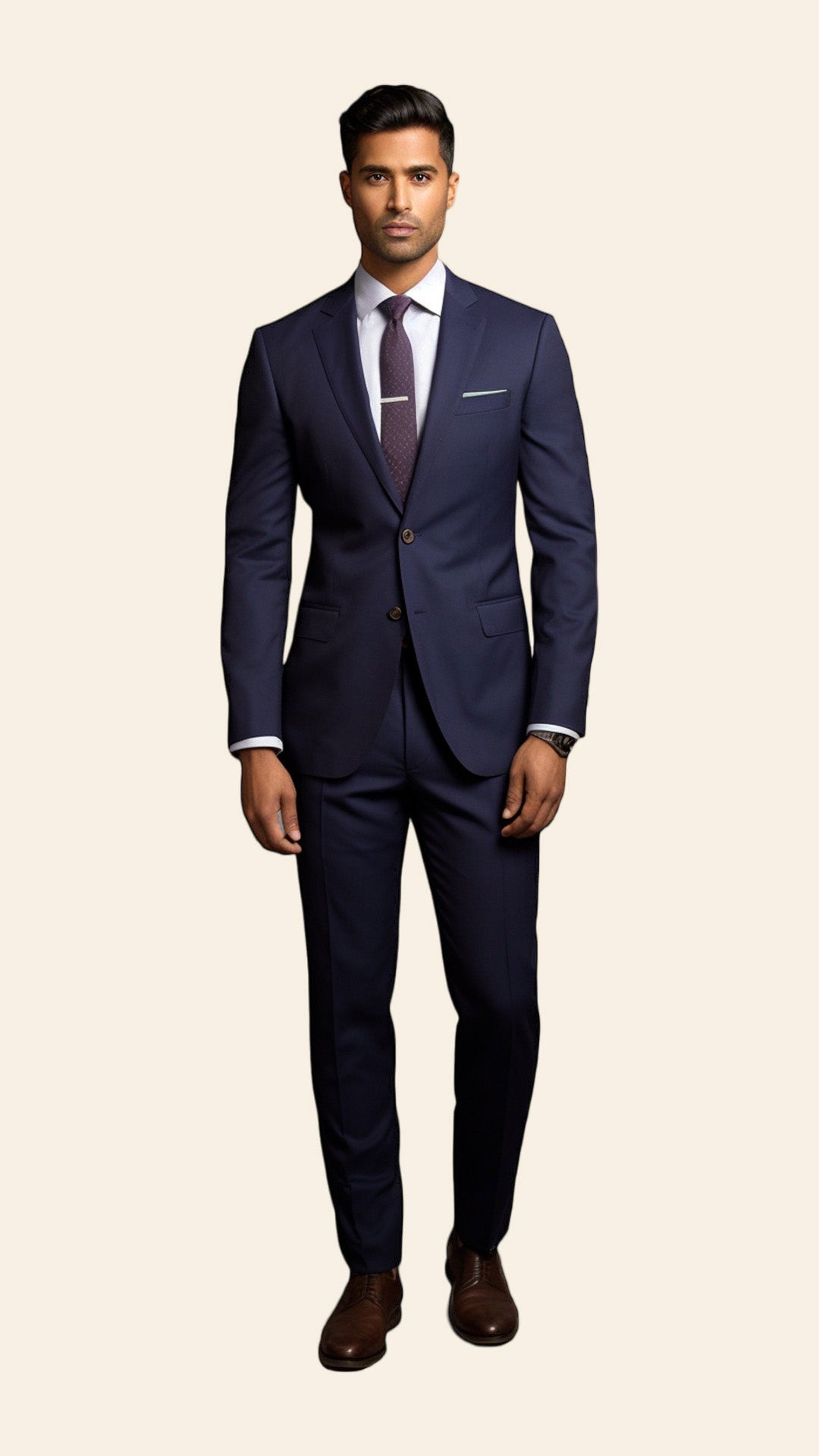 Custom Men's Three-Piece Blue Suit in Navy Shade - Crafted in Terry Rayon by BWO