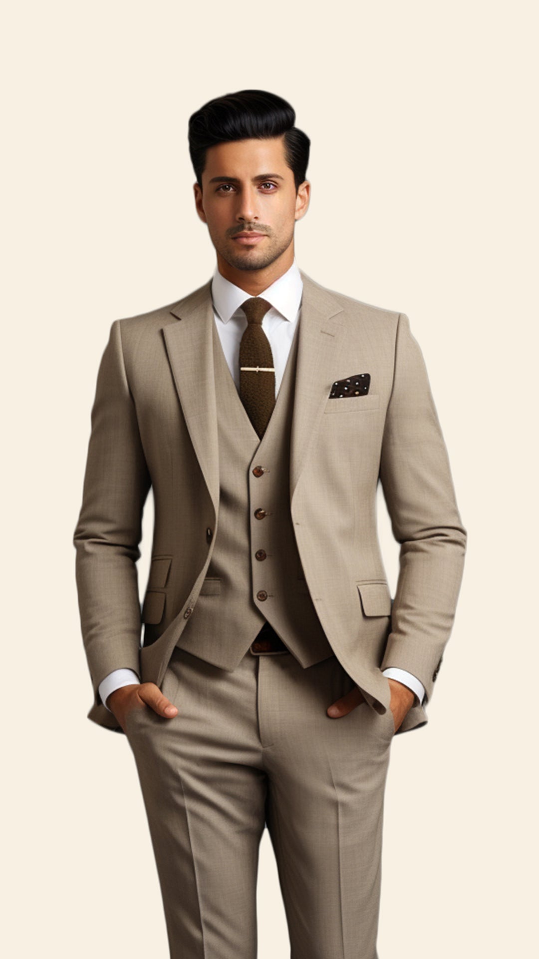 Bespoke Men's Three-Piece Beige Suit in Light Shade - Crafted in Terry Rayon by BWO