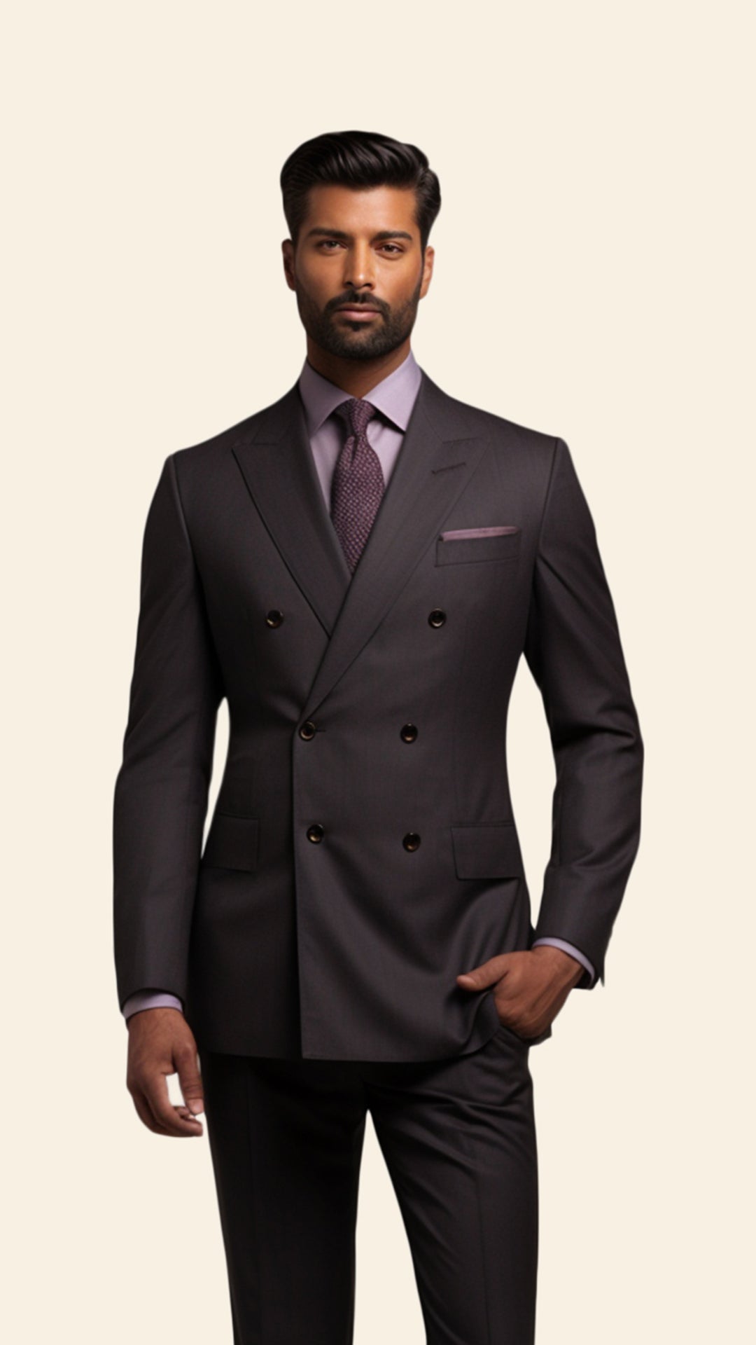 Bespoke Men's Three-Piece Grey Suit in Purplish Shade - Crafted in Terry Rayon by BWO