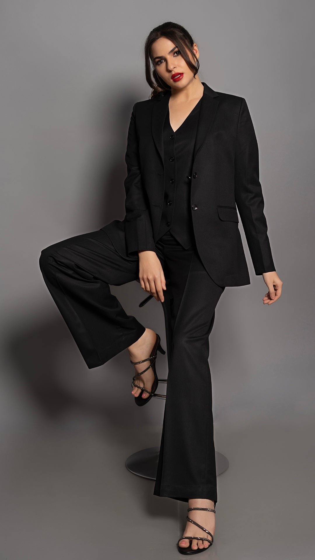 All black, all power. This three-piece suit is sharp, sculpted, and always in style — the ultimate wardrobe essential for bold women.