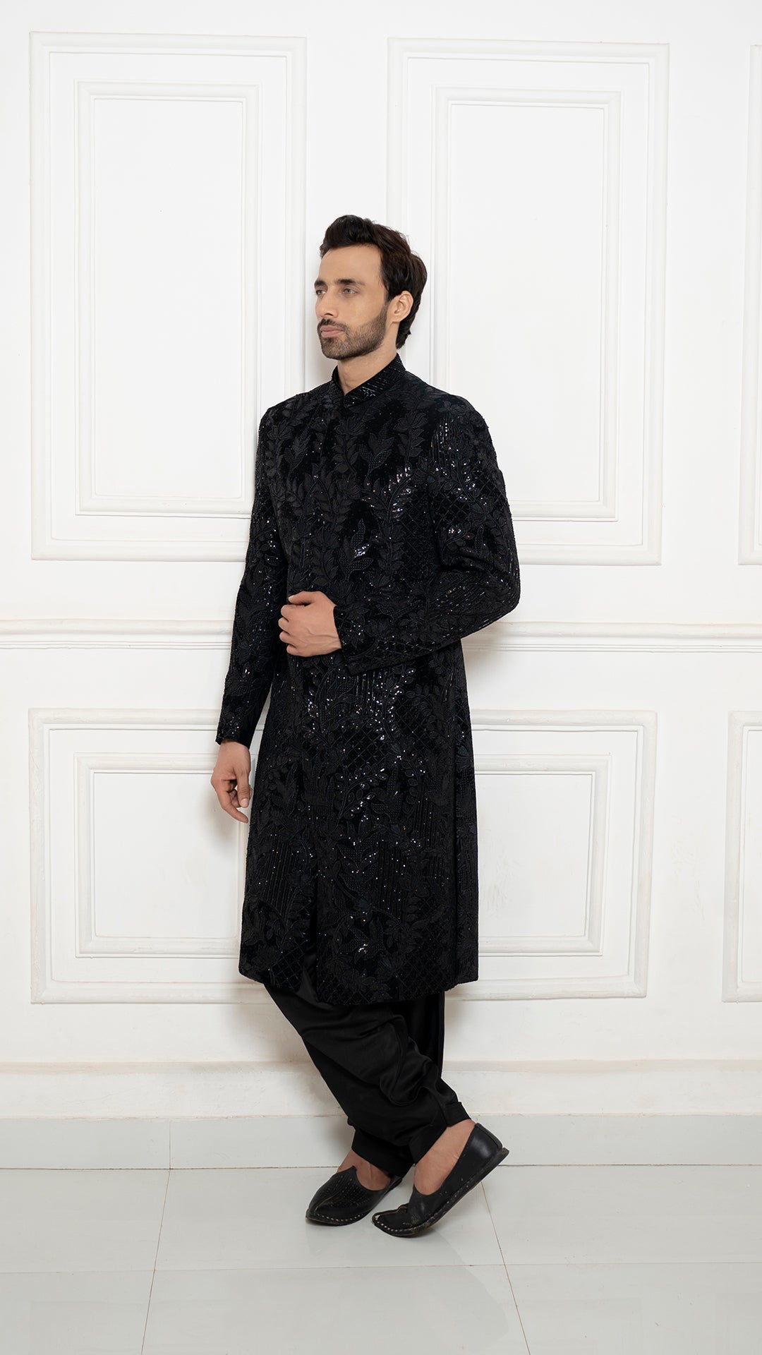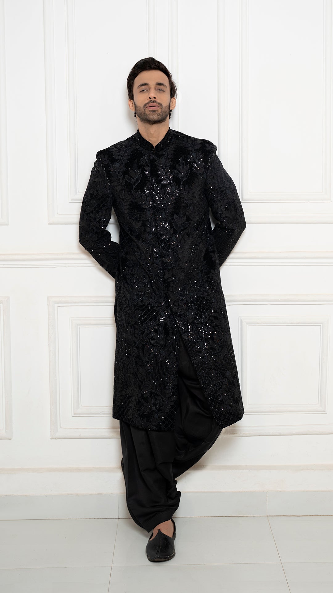 Black Embroidered Indowestern for Men | BWO by Smit Pithadia