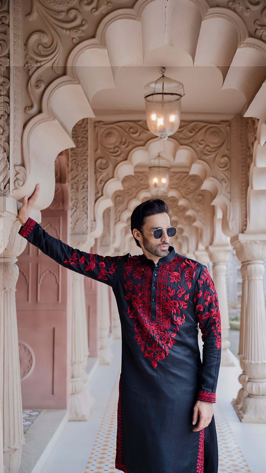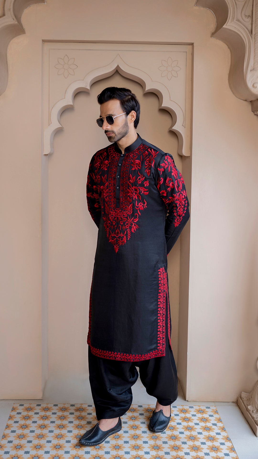 Black Kurta with Red Embroidery for Men | BWO by Smit Pithadia