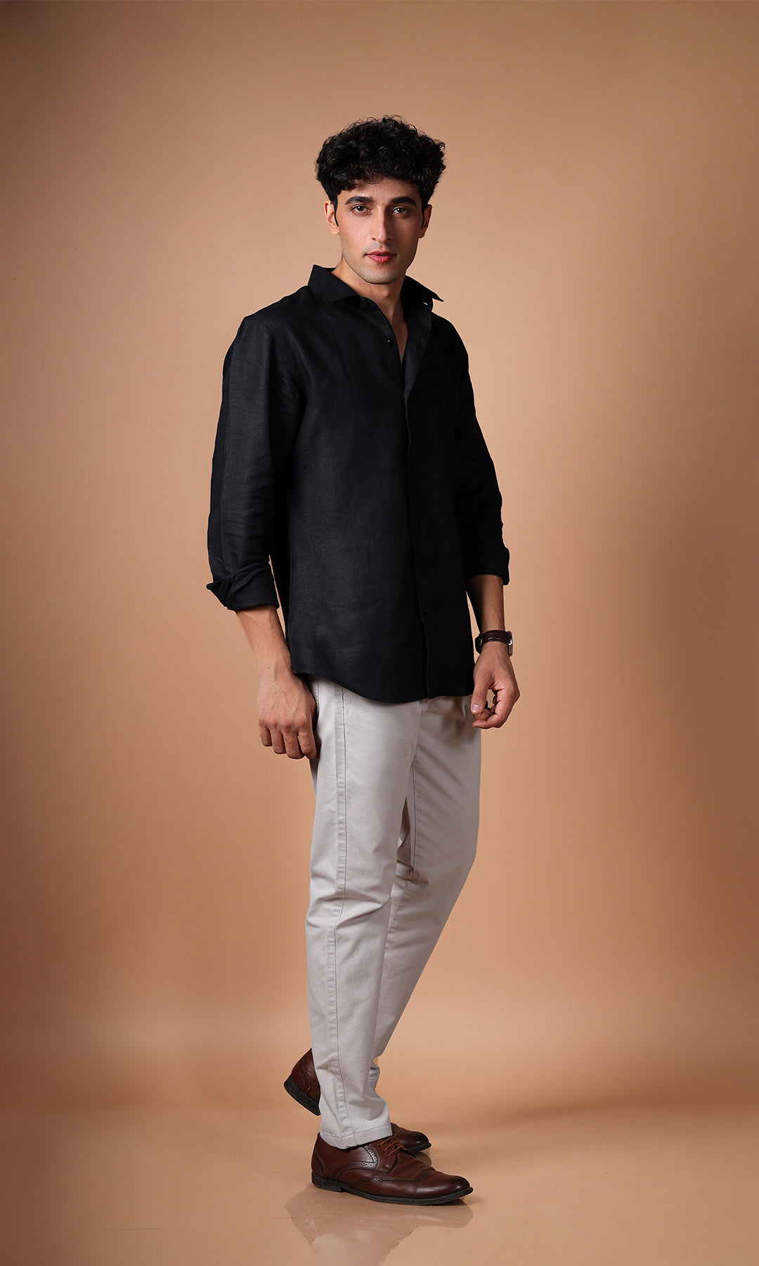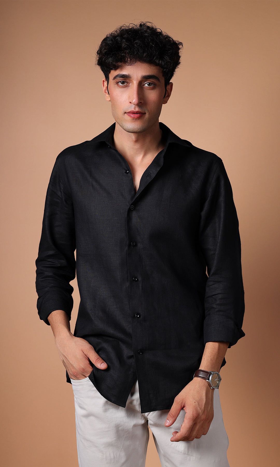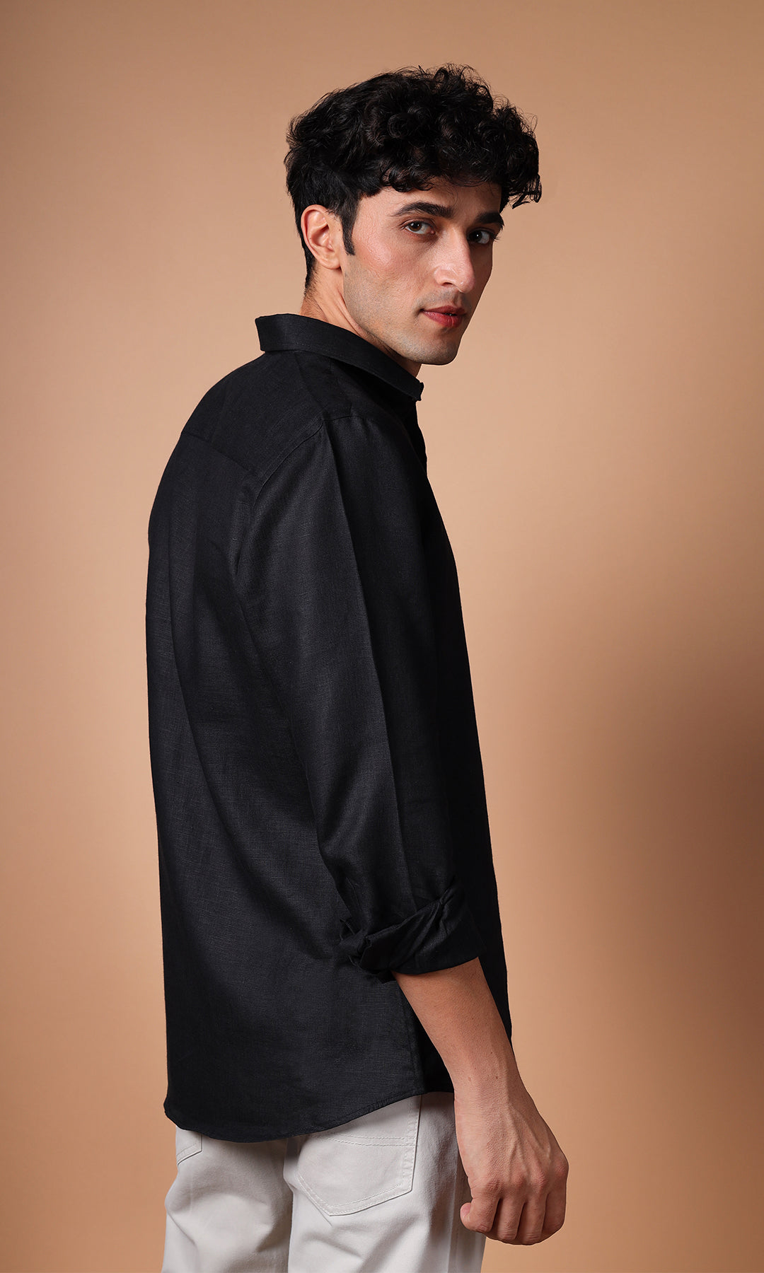 Black Pure Linen Shirt for Men | BWO by Smit Pithadia