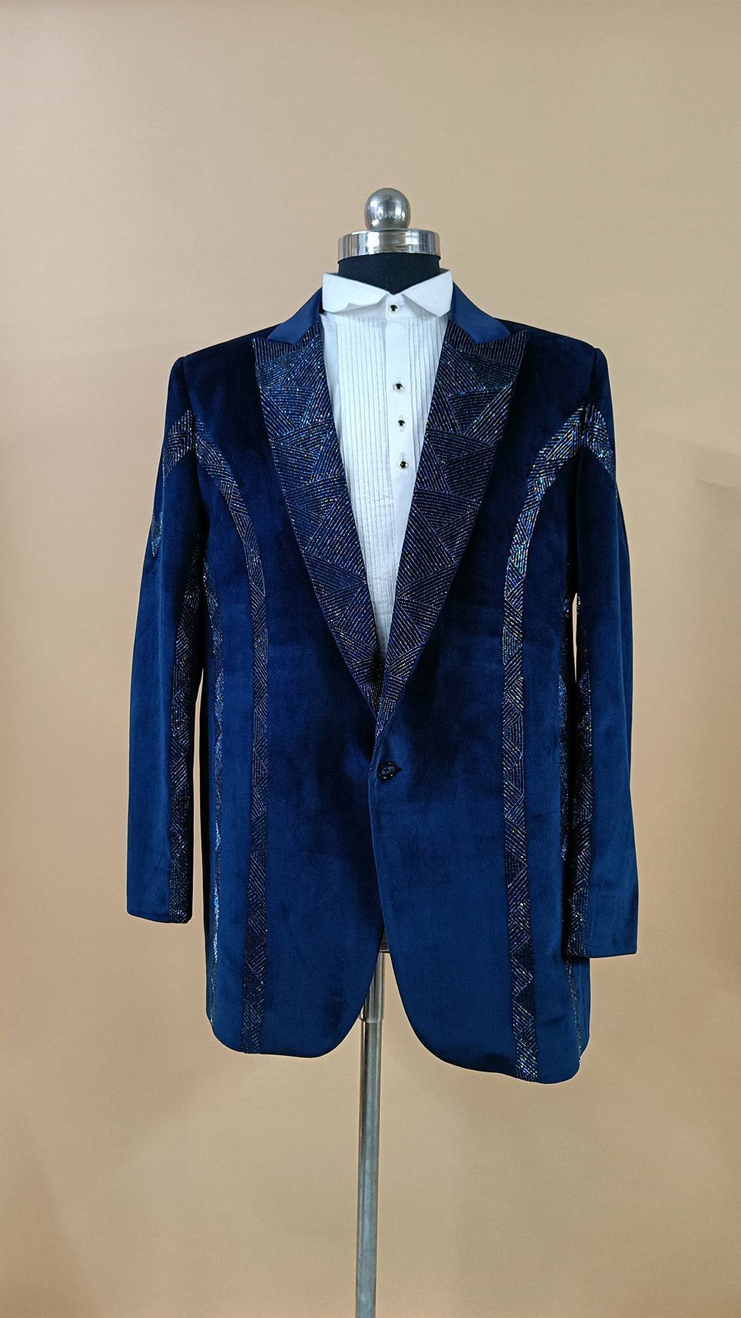 Blue Suede Tuxedo with Colorful Hand Embroidery - BWO by Smit Pithadia