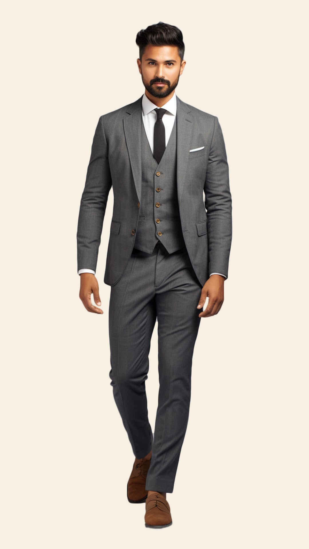 Bespoke Men's Three-Piece Grey Suit in Formal Shade - Crafted in Terry Rayon by BWO