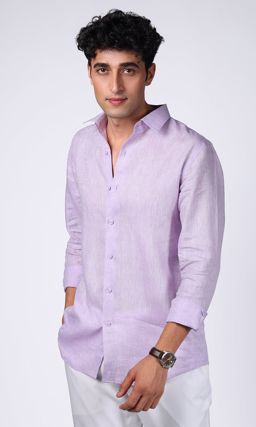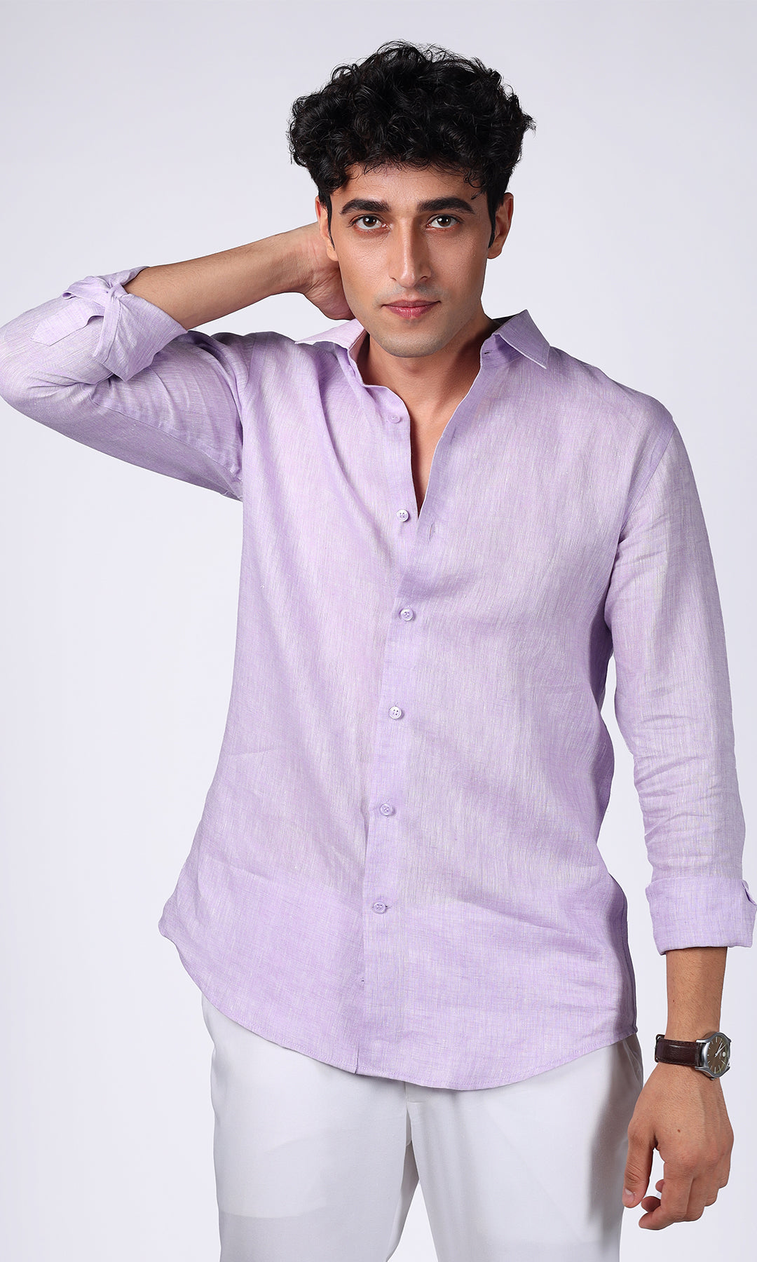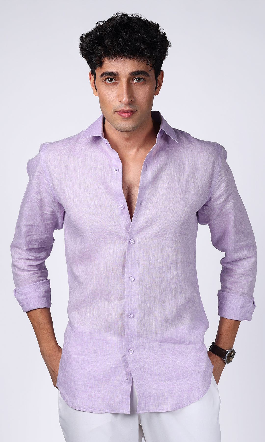 Lavender Pure Linen Shirt for Men | BWO by Smit Pithadia