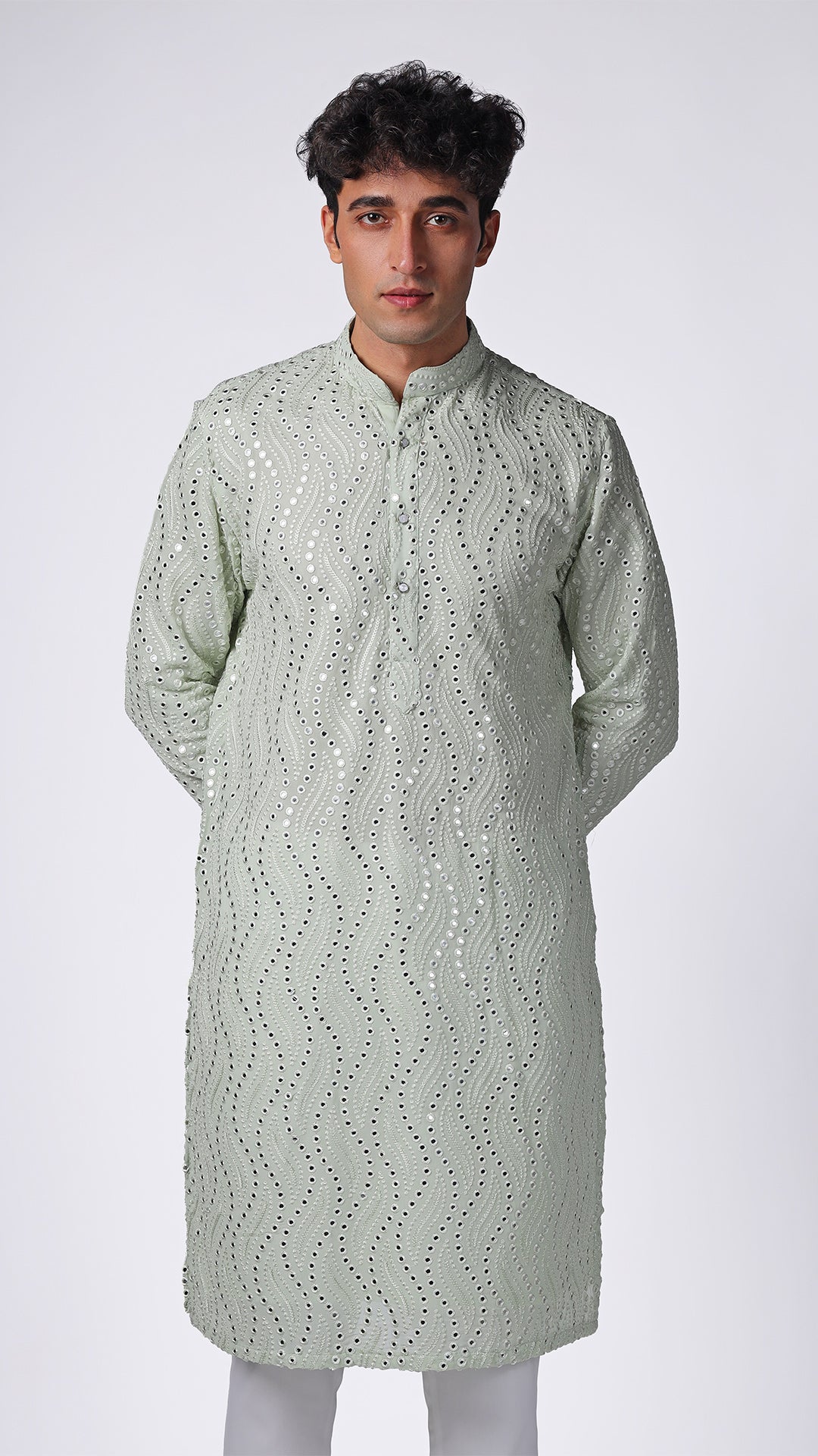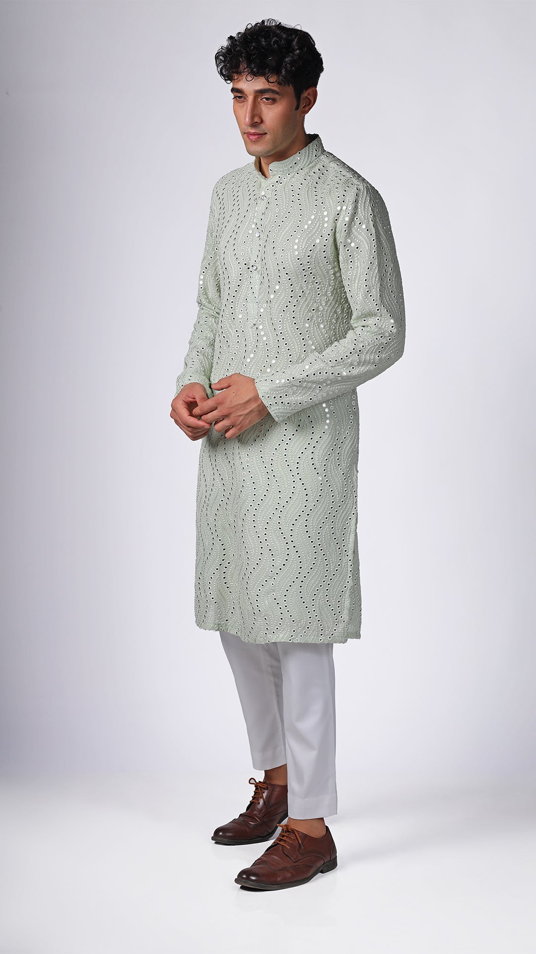 Mint Green Kurta with Curved Mirror Designs - BWO by Smit Pithadia