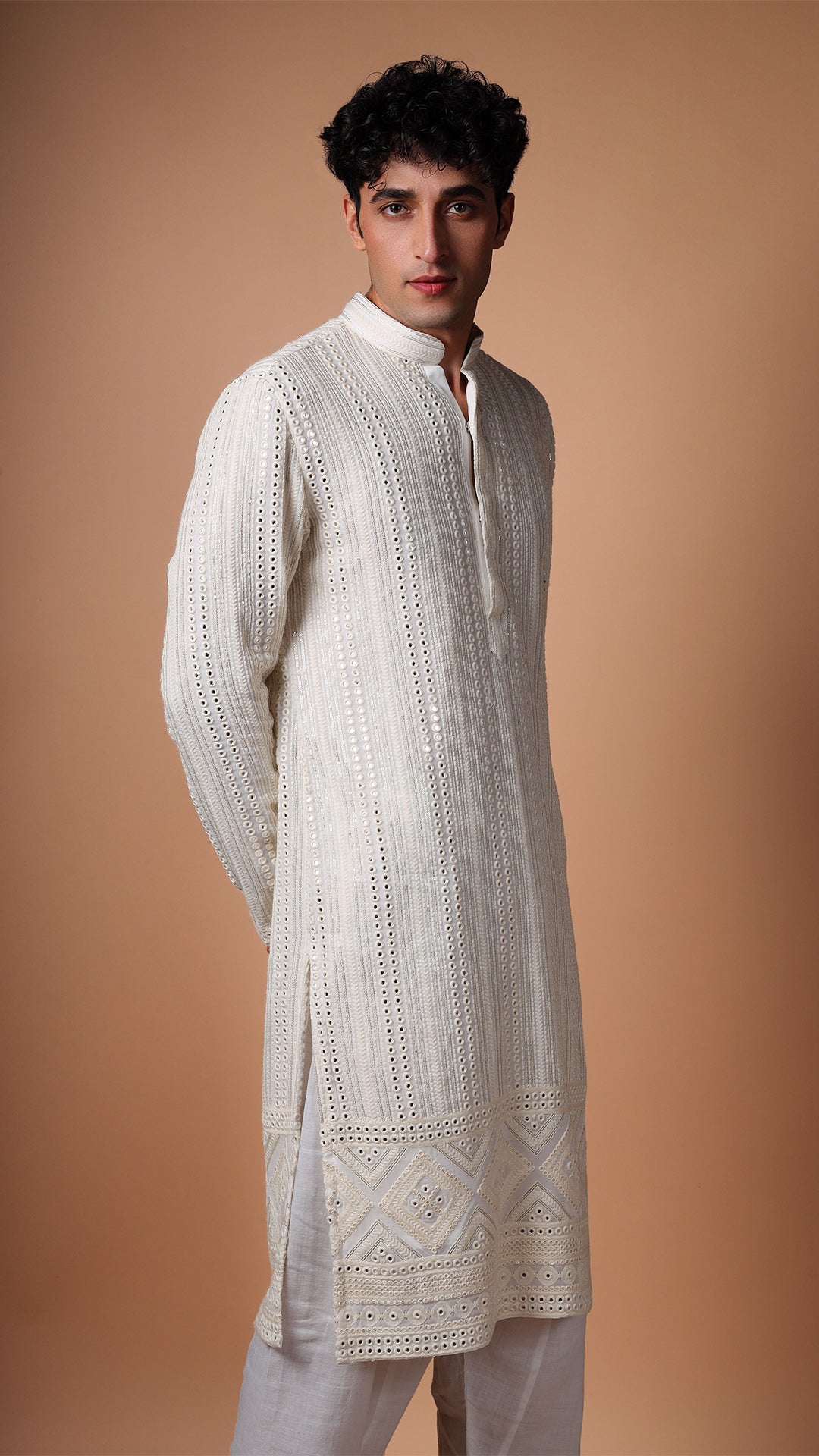 Off White Kurta with Vertical Panel Mirror Work - BWO by Smit Pithadia