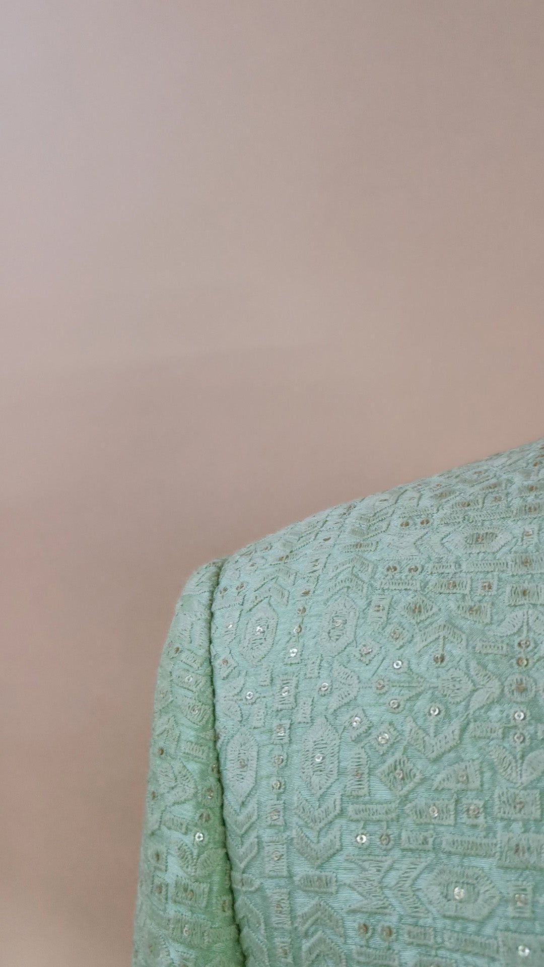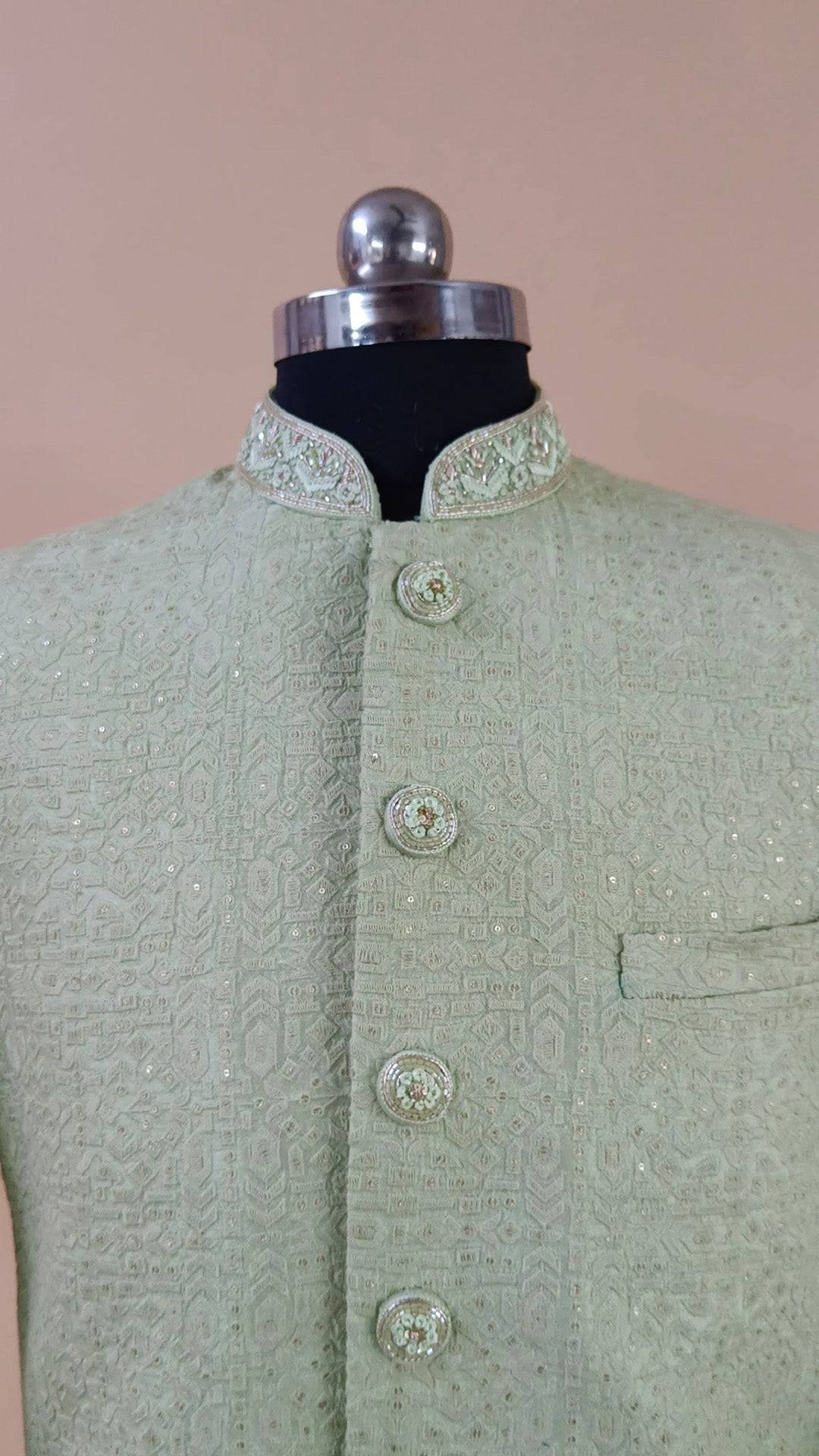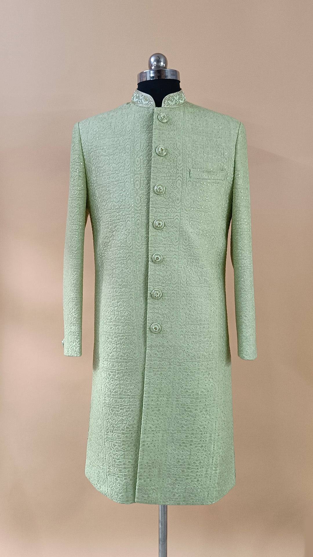 Parrot Green Lucknowi Geometrical Sequin Sherwani Set - BWO by Smit Pithadia