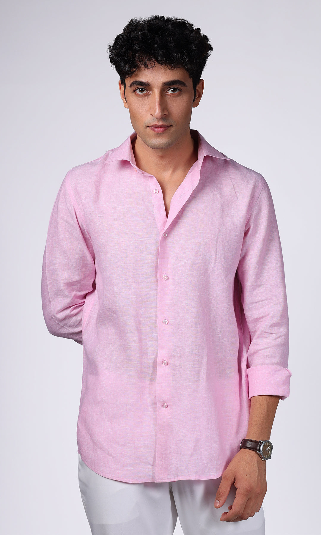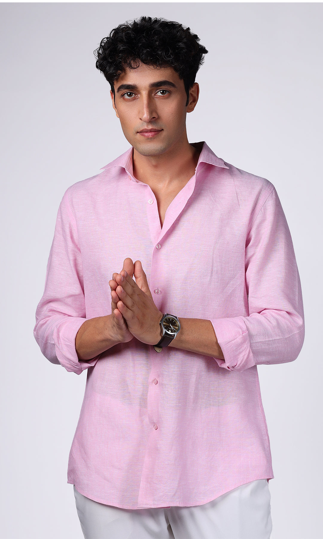 Pink Pure Linen Shirt for Men | BWO by Smit Pithadia