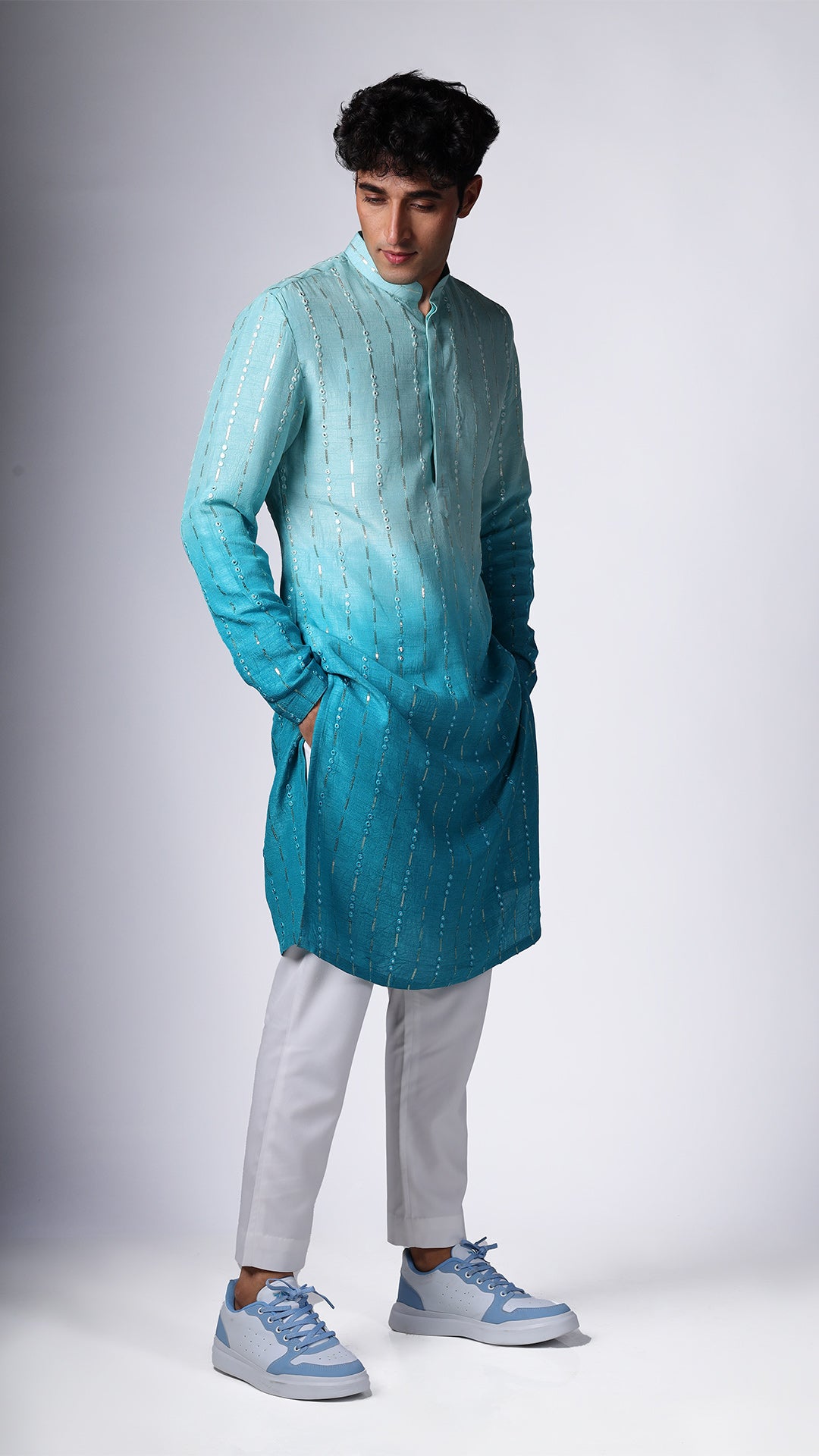Sky Blue Ombre Kurta with Sequin and Mirror Embellishments - BWO by Smit Pithadia