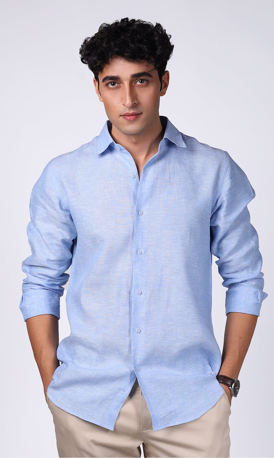 Sky Blue Pure Linen Casual Shirt for Men | BWO by Smit Pithadia
